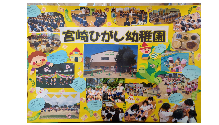 宮崎ひがし幼稚園は、「学校法人昭和学園」の六つの幼稚園の中にある幼稚園です。「すべては子どもたちの笑顔のために」保護者と幼稚園がしっかりと連携をとりながら、その中で子どもたちが温かく見守られ、安定した環境の中豊かな経験を通して自己を十分に発揮し、心身の力を養っていけるように教育を行っています。 安全教育 SDGsの取り組み 食育活動
